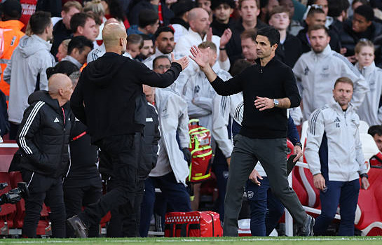 После пятого тура в АПЛ по-прежнему не теряет очки только «Ливерпуль». Команда Арне Слота в этот уик-энд в рамках мерсисайдского дерби принимала «Эвертон». В итоге действующие чемпионы одержали непростую победу со счетом 2:1. По голу в составе «красных» забили Райан Гравенберх и Юго Экитике. В центральном матче тура сошлись «Арсенал» и «Манчестер Сити». Команда Гвардиолы уже на девятой минуте забила усилиями набравшего невероятную форму Холанна. После этого «горожане» преимущественно играли от обороны. «Канониры» сумели отыграться лишь в компенсированное время. Отличился удачно вышедший на замену Мартинелли. Как итог, ничья со счетом 1:1. Лишь свою викторию в этом году добыли футболисты «Манчестер Юнайтед», которые под проливным дождем справились с лондонским «Челси» со счетом 2:1. Уже на пятой минуте «аристократы» остались вдесятером после удаления голкипера Роберта Санчеса. «Красные дьяволы» забили два мяча усилиями Бруну Фернандеша и Каземиро. Казалось, что манкунианцы и дальше будут развивать свое преимущество, но перед перерывом Каземиро схлопотал вторую желтую карточку и уровнял составы. Игроки «Челси» активизировались во второй половине, даже забили, но отыграться так и не сумели. «Манчестер Юнайтед» оказался сильнее со счетом 2:1. Впервые в этом сезоне сыграл вничью со своим соперником лондонский «Тоттенхэм». «Шпоры» ушли от поражения в гостевом матче с «Брайтоном». Встреча завершилась результативной ничьей со счетом 2:2. Удачные выезды получились у «Кристал Пэлас» и «Лидса». «Стекольщики» в лондонском дерби переиграли «Вест Хэм» со счетом 2:1, а «Лидс» справился с бедовым «Вулверхэмптоном» со счетом 3:1. Волевую победу одержал «Фулхэм». Подопечные Марку Силвы дома обыграли «Брентфорд» с таким же счетом 3:1, хотя хозяева пропустили первыми. Обменялись забитыми мячами, но не выявили сильнейшего «Бернли» и «Ноттингем Форест». С таким же счетом 1:1 завершилась игра между «Сандерлендом» и «Астон Виллой», хотя «черные коты» с 34-й минуты играли вдесятером после удаления Рейнилду Мандава. Вообще без голов обошлись «Борнмут» и «Ньюкасл». ![]() Фото - Getty Images В мерсисайдском дерби на «Энфилде» сошлись «Ливерпуль» и «Эвертон». Действующие чемпионы начали без особой раскачки и уже на десятой минуте вышли вперед. После передачи Мохамеда Салаха мяч в ворота «ирисок» отправил Райан Гравенберх. Через пять минут Салах уже мог забить сам, но после его выстрела снаряд пролетел чуть выше створа. На 27-й минуте «Эвертон» вполне мог отыграться. Грилиш вывел на ударную позицию Дьюсбери-Холла, которого подвела техника. На это «Ливерпуль» через пару минут ответил своим вторым голом. На этот раз Гравенберх выступил в роли ассистента, а гол в свой актив записал Юго Экитике. Подопечные Арне Слота вроде бы владели преимуществом, но это не помешало «ирискам» на 59-й минуте оживить интригу. В составе «Эвертона» голом отметился Идрисса Гейе. Вот только на большее команду Дэвида Мойеса все же не хватило. Как итог, трудовая победа «Ливерпуля» со счетом 2:1. Пока только дружина Слота не теряет очки в этом сезоне АПЛ. ![]() Фото - Getty Images В центральном поединке этого тура сошлись лондонский «Арсенал» и «Манчестер Сити». Уже на девятой минуте счет был открыт. И сделали это гости из Манчестера. Холанн получил мяч от Рейндерса и не упустил шанс забить свой шестой го