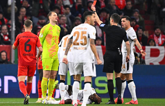 «Байер» сумел одержать выездную победу над «Баварией», выбив последнюю из розыгрыша национального Кубка. С 2019-го года не побеждали «аспириновые» мюнхенцев на «Альянц Арене», но вот сегодня удалось достичь подобного успеха леверкузенцам, спустя пять лет. Повезло подопечным Хаби Алонсо, что Нойер удалился уже на 17-й минуте, т.к. сыграл не по правилам за пределами своей штрафной, пытаясь остановить Фримпонга. Перец игру не провалил, но все равно ворота в неприкосновенности не оставил. Телла, сменивший Шика, сумел отличиться на 69-й минуте, послав головой игровой «снаряд» в правый нижний угол ворот конкурента. Надо отметить, что футболисты Компани даже вдесятером создавали опасные моменты у ворот Коваржа, однако обыграть приезжих не удалось, да и отсутствие Кейна сказалось. В последнее время немецкий гегемон очень рано вылетал из Кубка, нынешний сезон исключением не стал, хотя на этот раз «красные» старались, не хотели вылетать. Уже в 1/8 «Байер» сумел одолеть ФКБ, оставив такого грозного оппонента за бортом соревнований. Теперь у «аптекарей» вырисовываются прямо очень неплохие шансы, чтобы вновь завоевать данный трофей. ![]() Фото - Getty Images. Предыстория. Чемпионы последних лет в Германии должны были сойтись на стадии 1/8 национального Кубка. Да, поединок сродни финалу, а предстояло так рано отправить кого-то за борт соревнований. «Бавария» и «Байер» уже встречались в нынешнем сезоне, тогда сыграли вничью – 1:1, трудно приходится леверкузенцам на «Альянц Арене». Да и подопечные Компани на внутренней арене никому еще не проигрывали в нынешнем сезоне. «Аспириновые» барахлят, но в последнее время набрали ход. В общем, ожидалось, что кубковый бой станет едва ли не самым классным матчем Европы за всю неделю. Фаворитом шел гегемон, но ведь не стоило забывать, как могли вставить палки в колеса любому противнику Вирц и его компания. Все карты перемешались бы, удались кто-то из игроков, с той или иной стороны, неважно. Но конкуренты наверняка нацеливались на относительно аккуратную игру в первом тайме. В эти выходные немецких грандов объединило то, что они с трудом достигли положительных для себя результатов. Ребята Хаби Алонсо со скрипом выгрызли викторию, сражаясь с «Унионом» в Берлине (2:1). «Красные» и вовсе чуть не уступили дортмундской «Боруссии», однако гол Мусиалы спас их от первого поражения в сезоне на футбольных полях Германии. Делать прогнозы в подобных схватках, как у «Баварии» и «Байера» - дело неблагодарное, а потому оставалось просто ждать красивого зрелища и, по возможности, нескольких забитых голов. Конечно, отсутствие Бонифейса отчасти должно было сказываться на гостях, а повреждение Кейна на атакующих мощностях хозяев, однако и без того команды просто не могли подвести своих поклонников. Ход матча. «Бавария», как и всегда в матчах с «Байером» (да и не только с ним), много контролировала мяч. Гости не особо искали счастья в атаке. Мюнхенцы вроде и неплохой «стандарт» заработали, да только после его розыгрыша Коман залез в положение «вне игры». Далее же Фримпонг по левому флангу здорово сыграл, справился с Кимом и Лаймером. «Снаряд» заметался в штрафной хозяев, полетел на Вирца, Флориан пальнул с линии чужой штрафной, получилось рядом с левой стойкой ворот Нойера. Тапсоба и Фримпонг потом повздорили, другие тоже решили организовать м