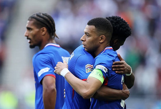Ничего не получилось у Германии в битве с Францией в матче за третье место Лиги наций. Начали немцы здорово, создавали опасные моменты у ворот конкурента, однако «трехцветные» на 45-й минуте вышли вперед, отличился Мбаппе. После этого на поле была одна команда. Во второй половине встречи приезжие выглядели свежо и ярко, чего нельзя было сказать о ребятах Нагельсманна. Килиан мог и дубль оформлять, однако рисковать не стал, решил сделать передачу на Олисе, которому лишь пустой створ оставалось поразить. Вот так 2:0 и увидели мы на табло. Конечно, ожидалась борьба, интригу хотелось, но получили лишь пассивных хозяев, которые при своих фанатах в Штутгарте по всем статьям уступили гостям. Отметим, как Динь спасал свою команду, выбивая «снаряд» с линии вратарской, Тюрам и Шерки достойно провели дуэль. Если говорить о Германии, то тут как-то и похвалить некого, разве что тер Стегена, который несколько раз выручал, пусть в итоге дважды и пропустил. ![]() Фото - Getty Images Предыстория. Вывеска в матче за третье место Лиги наций – это словно афиша к финалу Чемпионата мира. Германия против Франции. На деле же обе сборные стали неудачниками полуфиналов турнира, уступили они Португалии (1:2) с Испанией (4:5) соответственно. Поколения сменяются, результаты не особо радуют, но команды продолжают работать. Сливать никто не должен был очную битву, все-таки даже третья строчка соревнований – это престижно, да еще и определенная реабилитация перед болельщиками. Здесь трудно было выделять фаворита. Германия выступала дома, а их конкурент получше выглядит в нападении. У немцев нет звезды уровня Мбаппе, зато присутствует Вирц, который вполне может затмить даже Килиана. Ожидалось, что поединок получится не особо огненным, но достаточно интересным. Ход матча. Любопытно, что немцы сразу же разогнались настолько, что едва быстрый гол не оформили. Мимо защитников мяч прилетел к Вольтемаде, а тот уже на очную ставку с голкипером выбежал, да вот только пробил прямо в него. Далее Адейеми мяч упустил, тот улетел к Фюллькругу, который уже в сторону от вратаря разряжал, да только с самой «ленточки» вынес Динь. Кох не смог встать на пути у все того же Адейеми, тот пальнул по цели, но снова на пути встал французский кипер. Серьезно так напирала сборная Германии, однако пробить конкурента не удавалось. Динь, кстати, помимо подвигов, успевал еще и желтую карточку заработать. Сфолил он на Адейеми, за что получил «горчичник». Коло Муани свалился, вставать не хотел, но при этом пенальти требовать было бессмысленной затеей, рефери Кружляк на такое не ведется. Был потом эпизод, где Шерки подал в центр штрафной на Баде, а тот переправил в правый угол, выручил кипер. Вирц со штрафного затем прямо в стенку «заряжал», а Раус снес Коло Муани, за что увидел перед собой «желтый свет». Адейеми, кстати, в штрафной упал, но там больше тянуло на симуляцию, нежели на то, что Эрнандес правила нарушал. Изначально был назначен пенальти, однако в дальнейшем повтор разубедил рефери. Карим еще и за свою актерскую игру награду получил в виде «горчичника». Угловой по правой стороне от французов ни к чему толковому не привел, зато Шерки потерял мяч, пошел «снаряд» на Вирца, тот выстрелил в дальний угол, попасть удалось не в створ, а по штанге. В нападении у немцев дела совершенно не ладились, в защите получалось действо