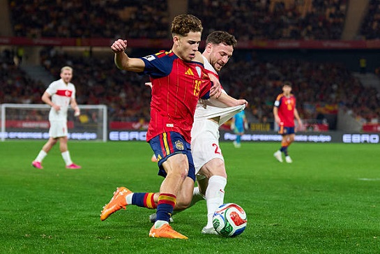 Даже с учетом отсутствия турнирной мотивации у хозяев итоговый результат удивил. Испания вышла в близком к оптимальному составе и забила быстрый гол. На четвертой минуте Ольмо замкнул кросс Кукурельи с фланга. Казалось, что хозяева устроят очередной разнос сопернику, который вышел сразу без трех ключевых игроков созидания – Гюлера, Чалханогу и Йылдыза. Все трое в итоге так и не вышли, однако турки справились и без них. Весь первый тайм они терпели и отбивались, а перед уходом на перерыв выдали всплеск активности и сравняли счет на угловом. Гюль после срезки защитника расстрелял Симона. После перерыва все ждали натиска испанцев, а вместо этого ударный отрезок вновь выдала Турция, сумевшая в итоге забить второй мяч. После скидки Кёкчю шикарный удар нанес Озджан. Дальше завелись уже испанцы, которые довольно быстро отыгрались. Сеюнджю сыграл не лучшим образом аж дважды в рамках одного эпизода и сделал всё для того, чтобы Оярсабаль забил очередной гол за сборную. Однако больше турки не проваливались и прижались к воротам только в самой концовке. Моменты у испанцев были, и не один, но где-то подтащил Байындыр, где-то хозяева сами мазали. Счет так и не изменился. Победная и сухая серии Испании прерываются, а Турция может считать эту ничью реваншем за унижение в первом круге. Весьма приятное впечатление оставила команда Монтеллы. ![]() Фото - Getty Images Ход матча Ляпорт с Кубарси составили пару в центре обороны, а справа вышел Льоренте. Мерино, Руис и Алеш Гарсия составили тройку в центре поля, а Оярсабаля с флангов поддерживали Пино и Ольмо. Гости окопались по 5-4-1. Байындыр появился в рамке, а компанию Демиралу в центре обороны составили Сеюнджю и Акайдын. Челик и Кадыоглу закрыли фланги. Мощный кулак в центре образовали Кекчю, Озджан, Кахведжи и Йылмаз, а на острие расположился Гюль. Гюлер и Йылдыз начали на скамейке, а солировавший с Болгарией Чалханоглу и вовсе остался вне заявки. Уже на четвертой минуте оборона сборной Турции пала. Гарсия разогнал слева Кукурелью, который выдал прострел на Руиса. Фабиан махнул мимо, но мяч дошел до бежавшего дальше Ольмо, который подработал и уложил его в сетку. На исходе стартовой десятиминутки Челик накрыл удар Руиса от угла штрафной, а следом Гюль отмахнулся в борьбе от Ляпорта, разбив защитнику лицо. Предупреждение и столь нужная прижатым к штрафной туркам пауза. Испания давила. Оярсабаль пальнул чуть выше после прострела Ольмо, Гарсия в следующей атаке неточно приложился издали. Ближе к середине тайма уже с угла вратарской влёт не попал в створ Оярсабаль после прострела Льоренте. Дальше уже просто чудом хозяева свой перевес не удвоили. После срезки защитника Оярсабаль выскакивал под углом один на один, но не пожадничал и покатил в центр Пино, удар которого уже по пустому створу блокировал на линии ворот Сеюнджю. На исходе получаса игрового времени Ольмо здорово развернулся на линии штрафной и влепил под перекладину, но спас в этом эпизоде партнеров Байындыр, сумевший перевести мяч на угловой. На угловом подбор после подачи собрал тот же Ольмо и снова зарядил под верхнюю планку. Вновь и Байындыр сыграл здорово, смахнув мяч за лицевую. Повторно разыграли от флажка без остроты хозяева. Следом штрафной на фланге заработал Мерино, но и тут подача не прошла. Турки впервые огрызнулись только минут за десять д