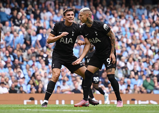 Субботнюю программу второго тура АПЛ открыл матч на «Этихаде», где встретились «Манчестер Сити» и «Тоттенхэм». В трёх предыдущих очных поединках между этими клубами с «сухим» счётом побеждали гости, и эта серия продолжилась. Хотя такой убедительный успех «Тоттенхэма» стал неожиданностью. Команда Хосепа Гвардиолы ранее не заметила сопротивления «Вулверхэмптона», но со «шпорами» её пришлось заметно тяжелее. Лондонцы здорово выбегали в контратаки, тогда как «горожане» в позиционном нападении были не столь эффективны. В первом тайме Эрлинг Холанн создал верный момент для Омара Мармуша, но тот проиграл дуэль Гульельмо Викарио. «Тоттенхэм» же подошёл к своим шансам бережнее. Оба удара гостей в створ ворот до перерыва обернулись голами. Сперва после прострела Ришарлисона цель поразил Бреннан Джонсон, а затем после ошибки Джеймса Трэффорда мяч в ворота отправил Жоау Пальинья. Казалось, во второй половине встречи «Манчестер Сити» нарастит давление, однако весомого перелома в игре не случилось. «Шпоры» грамотно оборонялись и практически ничего не позволили создать сопернику. Более того, в концовке встречи вышедший на замену Уилсон Одобер едва не довёл дело до разгрома. «Тоттенхэм» одержал закономерную победу. При Томасе Франке «шпоры» уверенно смотрятся с грандами – в ворота ПСЖ и «Сити» они отправили по два мяча. Что же касается «горожан», то, очевидно, что Хосеп Гвардиола получил богатую пищу для размышлений. «Сити» в отчётном матче не убедил ни в обороне, ни в атаке. ![]() Фото - Getty Images Предыстория. Поединок между «Тоттенхэмом» и «Манчестер Сити» выглядел одним из самых любопытных во 2-м туре АПЛ. Обе команды на старте чемпионата порадовали своих болельщиков, разгромив оппонентов. «Горожане» не оставили камня на камне от обороны «Вулверхэмптона» (4:0). Эрлинг Холанн отметился в этой встрече дублем. Себя провели новички команды Тиджани Рейндерс и Райан Шерки. «Тоттенхэм» победил «Бернли» чуть скромнее (3:0). «Шпорам» помог быстрый гол, а во втором тайме они развили своё преимущество. Здесь два мяча записал на свой счёт Ришарлисон, один из них получился весьма эффектным. Для «Тоттенхэма» игра на «Этихаде» была уже третьей в сезоне. Команда Томаса Франка едва не завоевала Суперкубок УЕФА, но в противостоянии с ПСЖ упустила фору в два мяча на последних минутах, а в серии пенальти не преуспела. Фаворита в поединке между «Манчестер Сити» и «Тоттенхэмом» обычно трудно предсказать. В трёх предыдущих очных матчах чемпионата между этими командами каждый раз побеждали гости, причём, с «сухим» счётом. В момент своего последнего посещения «Этихада» «шпоры» отправили в ворота соперника четыре безответных мяча. И «горожане» ту пощёчину, разумеется, не забыли. Впрочем, сейчас «Тоттенхэмом» рулит уже не Ангелос Постекоглу, а Томас Франк, для которого визит на «Этихад» стал вторым экзаменом в текущем сезоне (после ПСЖ). Что касается кадровых проблем, то хозяевам не могли помочь травмированные Йошко Гвардиол, Матео Ковачич и Савиньо, у гостей же отсутствовали Дестини Удоджи, Раду Драгушин, Джеймс Мэддисон и Деян Кулусевски. Ход матча. Хосеп Гвардиола выпустил самый молодой состав «Сити» за девять лет своего нахождения в клубе. На острие нападения был выдвинут Холанн, на флангах полузащиты вышли Мармуш и Бобб. Нико занял опорную зону. У «Тоттенхэма