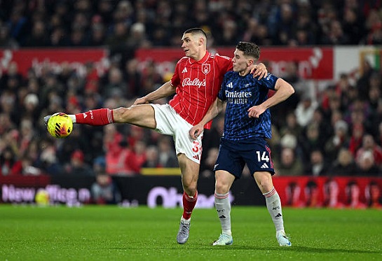 Ведущий борьбу за выживание «Ноттингем Форест» принимал «Арсенал», набравший чемпионский темп. В стартовый отрезок матча была примерно равная игра, лишь угловые «канониров» несли в себе угрозу: Мадуэке и Райс закручивали мяч в створ — в первом случае получилось неточно, а во втором — Селс был начеку. После ещё одного углового удар Мадуэке с подбора заблокировали, а замыкавший дальний угол вратарской после отскока Мартинелли немного не попал в створ. Хозяева также проявили себя в атаке: Хадсон-Одои едва не получил выход один на один с голкипером — Райя вышел за пределы штрафной и выбил мяч в поле. Ещё один выход Райя предотвратил прорыв Жезуса по левому флангу. После перерыва Артета пытался усилить игру с помощью замен. Райс имел шанс вывести гостей вперёд, пробив в касание из пределов штрафной, но Селс отбил мяч в сторону. А чуть позже голкипер «Ноттингем Форест» совершил классный сейв, достав мяч из угла после удара головой в исполнении Сака. Лондонцы наращивали давление, не желая мириться с потерей очков. Однако хозяева надёжно играли в обороне и не позволяли сопернику развернуться. На табло так и остались гореть нули. «Арсенал» упустил возможность увеличить отрыв от «Манчестер Сити» до девяти очков. ![]() Фото - Getty Images Предыстория. «Канониры» в нынешнем сезоне нацелились на все возможные трофеи. Новая беспроигрышная серия дружины Микеля Артеты достигла отметки в 10 матчей. Время «Ноттингем Форест» прошло. Ныне «лесники» скрываются в тёмных дебрях подвала турнирной таблицы, старательно избегая «зоны вылета». Между тем «Ноттингем Форест» провёл весёлый матч в Кубке Англии с «Рексхэмом». Перестрелка не выявила победителя в основное и дополнительное время, а в серии пенальти точнее оказался соперник (3-3, по пенальти: 3-4). Впрочем, едва ли «лесники» слишком сокрушались по поводу вылета из турнира — впереди у них не только борьба за сохранение «прописки» в элите, но и Лига Европы. Недавняя победа над прямым конкурентом в лице «Вест Хэма» позволила оторваться от опасной черты на 7 очков до начала тура. Однако держаться на плаву позволяет лишь наличие в лиге ещё более кризисных конкурентов. 12 поражений за 21 тур – это очень много. В списке травмированных — голкипер Джон Виктор, полузащитник Райан Йейтс и нападающий Крис Вуд. Защитник Александр Зинченко не примет участие в матче по условиям арендного договора. «Арсенал» набрал чемпионский темп. Единственной проблемой лондонцев на текущем отрезке сезона становится сверхнасыщенное расписание, ведь «канониры» идут на максимальный результат по всем фронтам. Впрочем, глубина состава пока позволяет безболезненно преодолевать любые трудности. В минувшем туре «Арсенал» сумел «засушить» «Ливерпуль», но и сам не забил (0:0). Впрочем, эта осечка не помогла конкурентам приблизиться, ведь «Манчестер Сити» и «Астон Вилла» также синхронно потеряли очки. А команда Микеля Артеты как ни в чём не бывало продолжила победный путь уже в кубках, поочередно убрав с пути скромный «Портсмут» (4:1) и переживающий перестройку «Челси» (3:2). В списке травмированных — защитники Кристиан Москера и Риккардо Калафьори, а также полузащитник Макс Доуман. «Арсенал» забил много голов, а их игра в обороне выглядит просто великолепно. Тем не менее, «Ноттингем Форест» способен доставить фавориту проблем. Игра первого кру