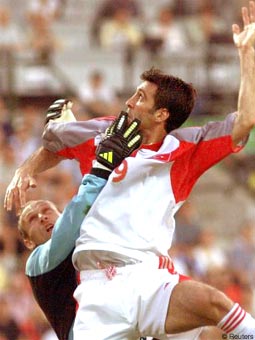 Турецкая сборная, благодаря двум голам Хакана Шукура, сенсационно выходит в следующий круг чемпионата Европы. В четвертьфинале турки встречаются с победителями группы А португальцами. Перед матчами последнего тура Турция занимала в таблице последнее место. Бельгийцам было достаточно даже ничьи, но одни из хозяев первенства остались всего лишь на третьем месте и выбывают из турнира. Это первая победа турков в финальных стадиях чемпионатов Европы. Матч начался с атак бельгийцев, которые имели ощутимое преимущество в центре поля. Весь первый тайм хозяева обстреливали ворота Русту, но голкипер турок в этом матче был безупречен. На 24 минуте Мпенза забил гол, арбитр матча взятие ворот отменил из-за оффсайда со стороны Вильмотса. На 41 минуте произошел редкий случай, судья матча Ким Милтон Нильсен потянул мышцу и не смог продолжать встречу. Его заменил резервный судья - австриец Гюнтер Бенко. Шло добавленное арбитром время и вдруг оборона и вратарь бельгийцев соорудили себе гол из ничего. Мяч парашютом взвился над штрафной бельгийцев, два защитника пропустили мяч и тут как тут оказался нападающий сборной Турции Хакан Шукур. Он прыгнул выше опешившего вратаря Де Вильде и головой отправил мяч в пустые ворота. Во втором тайме бельгийцы стали атаковать еще яростнее, несколько стопроцентных моментов имел Мпенза, но великолепно играл Русту. В одной из редких контратак турки удвоили счет. Защита сборной Бельгии ошиблась с искусственным оффсайдом, Суат и Хакан Шукур выбежали к воротам Де Бильде и как на тренировке закрепили успех своей сборной. После второго мяча бельгийцы атаковали уже по инерции, давая большую свободу для контратак турок. В одной из них вратарь Де Вильде сбил за пределами штрафной площади Арифа и справедливо был удален с поля. Лимит замен к этому времени закончился и в ворота стал защитник Дефляндр. Правда вступить в игру ему так и не пришлось, турки главным образом заботились о сохранении приемлимого для них счета.