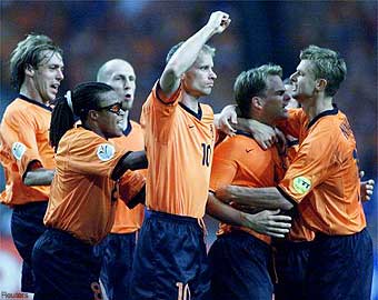| Кристоф Дюгарри, 8 (0:1). Патрик Клюйверт, 14 (1:1). Дэвид Трезеге, 31 (1:2). Франк Де Бур, 51 (2:2). Будивейн Зенден, 59 (3:2). | |