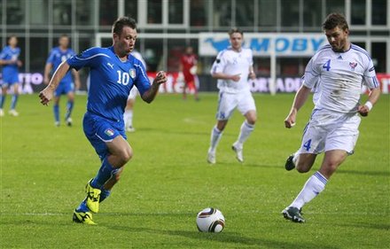 Чисто итальянская победа! В очень корректном (всего одна желтая карточка за всю игру) поединке в Торсхавне сборная Италии добилась важной победы над командой Фарерских островов. Теперь "Скуадре Адзурре" выйти с первого места в группе может помешать только чудо под названием сборная Сербии, да собственная расхлябанность, ведь надо набрать всего 2 очка в 3 матчах. В отчетном поединке итальянцы организовали несколько быстрых набегов на ворота Торгора, добились пары угловых и забили гол. Кассано на 11-й минуте показал, что в "Милане" он остался не зря, потому как сможет быть полезен. В дальнейшем "рыбаки" несколько раз били по воротам Буффона и даже 2 этих удара прищлось в створ, но кипер "Ювентуса" был надежен. В свою очередь, итальянцы, помня про игру со Словенией, не стали выкладываться полностью и добивать соперника, хотя шансы для взятий ворот были. Думается, итоговый счет всех устроил. |