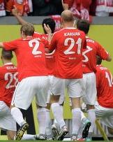 А вот два остальных представителя еврокубковой зоны стали большой-пребольшой неожиданностью. Пока "Гамбурги", "Вердеры", "Штутгарты" и все остальные трещали по швам, их места под пьедесталом заняли настоящие "серые мышки", от которых никто и близко подобного не ждал. Особенно это касается скромного "Майнца", некоторое время шедшего даже на первой строчке в турнирной таблице. После потрясающего старта все с полной уверенностью ждали отката "карнавальщиков" в подвалы турнирной таблицы. Но для этого хотя бы нужен был качественный скачок в игре преследователей. А вот они выступали не лучше коллектива Томаса Тухеля, сумевшего в итоге финишировать на пятой месте в огромнейшем отрыве от шестого "Нюрнберга" и всей плотной группы клубов, следующих сразу за спиной южан. При этом лидер атак "Майнца" Андре Шуррле стал одним из главных открытий нынешнего сезона и очередной молодой звездочкой, которая через пару лет непременно станет стабильным игроком бундесманшафт. Просто зависть берет от того, насколько в последние годы плодотворен на таланты элитный немецкий дивизион, да при том, что сама сборная этой страну уже на данный момент - одна из сильнейших в мире и точно самая перспективная. Выше "карнавальщиков" в турнирной таблице финишировали только представители пьедестала почета и "Ганновер". Одно время этот клуб претендовал даже на то, чтобы остаться на третьем месте и лишить путевки в Лигу чемпионов саму мюнхенскую "Баварию", но силы оказались явно не равны, а Дидье Конана с Мохамедом Абделлауе все же едва ли можно поставить в один ряд с мюнхенскими звездами.
