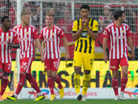 Озкан увидел перед собой «желтый свет», т.к. вел себя неподобающим образом, Шлоттербек в подкате сумел отобрать мяч у Сибачо. Был потом момент, когда Мукоко получил мяч на чужой половине поля, отодвинулся ближе к центру и разрядил по воротам, только в створ не попал. Адейеми по флангам бегал, как-то старались «шмели» подобраться к чужой штрафной, однако берлинцы грамотно сдерживали оппонента. Триммель с Шлоттербеком доигрались до того, что был зафиксирован офсайд. На первой компенсированной минуте заработали приезжие угловой на правом фланге, оттуда в центр подал Адейеми, только вот Лейте сумел головой выбить «снаряд». На перерыв ушли команды при незавидных для дортмундцев цифрах.