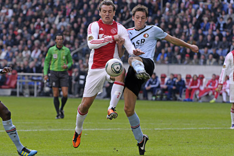 В последнее время "Аякс" и "Фейеноорд" решали разные задачи, однако принципиальность их очных встреч нисколько не снизилась, равно как остался на прежнем уровне и накал страстей вокруг всеголландского дерби, первый раунд которого в этом сезоне состоялся в Амстердаме.