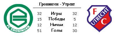 Несмотря на весь свой могучий потенциал, "Утрехт" продолжает пасти задних в Эре. Вылет команде Яна Воутерса пока не грозит, но если никаких изменений в её игре не произойдёт, то стоит ждать беды. Впрочем, есть у утрехтцев и достаточно весомое оправдание - не виданный кадровый кризис, выкосивший едва ли не половину состава. Так, в Гронингене тренер "Утрехта" не сможет рассчитывать сразу на восьмерых игроков, большая часть которых имеют непосредственное отношение к основному составу. Естественно, в таких условиях рассчитывать хотя бы на ничью на "Еуроборге" уже будет чрезмерным оптимизмом. Что же касается "Гронингена", то здесь всё предельно просто. "Северяне" просто обязаны пользоваться слабостью неудобного для себя соперника, так как на кону стоит возможность максимально приблизиться к "Витессу" и заветной шестой строчке. Хотя у подопечных Питера Хюистры также имеется богатый запал травмированных игроков, впрочем и без них "Северяне" уже давненько обходятся умело.