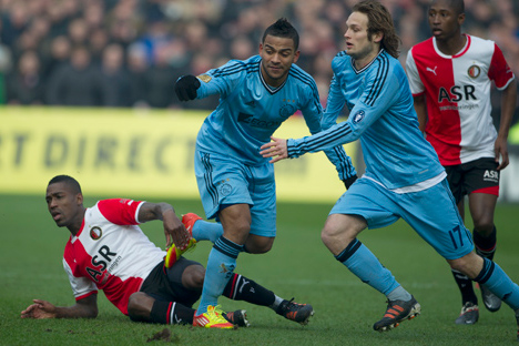 В канун этого голландского футбольного праздника улицы пестрят флагами, фанаты распевают свои самые любимые кричалки, а полицейские устраивают забастовки. Правильно. Грядет "классикьер". Классическое голландское противостояние главных клубов Амстердама и Роттердама в последние годы потеряло свою турнирную значимость - в нём всё реже разыгрываются высокие места и важные трофеи. Во многом тому виной падение "Фейеноорда", который за несколько лет превратился из гранда в пусть амбициозного, но всё-таки середняка. Впрочем, в текущем сезоне у команды Ронаьда Кумана всё ещё остаются шансы побороться за, скажем, попадание в первую тройку, да и от "Аякса" она в данный момент отстаёт всего лишь на три очка. А что такое три очка? Это цена победы в сегодняшнем очном поединке. Рестарт после зимних каникул "Фейеноорд", прямо скажем, "проспал". По крайней мере, поражение в гостевом матче с занимавшим предпоследнее место "ВВВ Венло" (1:2) наверняка стало "холодным душем" для роттердамцев. А ведь подопечные Кумана быстро открыли счет - уже на 12-й минуте отличился Бруно Мартинс Инди, но в ответ пропустили дважды ещё до перерыва. "Аякс", в свою очередь, "развлекал" себя звездными войнами" с одним из главных фаворитов футбольного сезона в Голландии - АЗ. Сначала столичный клуб дома уступил в переигровке матча 1/8 финала Кубка Голландии (2:3), а спустя несколько дней в рамках чемпионата добился лишь ничьей в Алкмааре (1:1). Напомним, что в первом круге на "Амстердам Арене" сегодняшние соперники разошлись миром (1:1). В составе "Аякса" отличился Ян Вертонген, а за "Фейеноорд" забил Стефан де Врей.