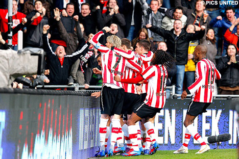 Где-то минуты с 15-й подопечные Кумана окончательно осмелели и из глухой обороны очень неплохо перешли к активному прессингу на чужой половине поля, а затем и к более акцентированным атакам. После серии не самых удачных угловых дело дошло и до более явной опасности. Схакен, обыграв на левом фланге Хатчинсона, ворвался в штрафную и мощно выстрелил в ближний угол. Исакссон спас. И тут же опасно пробивал оставшийся без опеки в штрафной Фернандес, но попал во вратаря. Осознав, что с таким соперником тактика выжидания ни к чему хорошему не приведет, эйндховенцы перестали отсиживаться на своей половине поля и ответили опаснейшей атакой. Матавж, приняв мяч в штрафной "Фейе", тут же получил удар по ногам от Влаара. Пенальти? - Да. Однако Тим поднялся на ноги и протолкнул мяч мимо выскочившего ему навстречу Мюлдера, и круглый попал к Мертенсу, которому оставалось расстрелять пустые ворота, но он умудрился попасть в притаившегося на штанге Мокото. Одного этого момента было достаточно, чтобы доказать - при необходимости ПСВ может быть гораздо опаснее в атаке, но "Фейе" также не дремал. Уже в следующей атаке Эль Ахмади не хватило сантиметров, чтобы отправить мяч в нижний угол. Ответа хозяев на этот выпад, казалось в первом тайме уже не дождаться, однако перед самым перерывом ПСВ выстрелил, и в этот раз - точно в цель. Мертенс здорово протащил мяч в штрафной "Фейе" сквозь двух защитников и выложил его точно под удар Тойвонену, который из пределов вратарской не оставил шансов Мюлдеру.