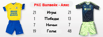 Оступившись в прошлом туре, "Аякс" упустил прекрасную возможность догнать ПСВ в турнирной таблице. В этом туре эйндховенцы такого подарка столичной команде не сделали, пусть и с трудом, но им всё-таки удалось обыграть "Утрехт" (2:1). Теперь если "Аякс" не сможет победить на выезде "Валвейк", то отрыв от первого места увеличится. Да к тому же, осечку не позволяет допустить и "Фейеноорд", который уже вплотную подобрался к "аяксидам" и имеет в активе столько же очков. В общем, борьба на вершине турнирной таблицы в самом разгаре. Нынешний соперник амстердамцев - "Валвейк" - подходит к этому матчу не в лучшей форме. Подопечные Эрвина Кумана после нулевой ничьей на старте второй части чемпионата с "Твенте", потерпели три поражения подряд. В двух из них даже не удалось забить гола. В прошлом туре хотя бы эту полосу удалось прервать. Шансов с "Аяксом" у РКС не так много, тем более "аяксиды" будут настроены только на победу. За "Валвейк" может разве что сыграть усталость соперника, который на неделе играл в Лиге Европы со "Стяуа". Но в тоже время "Аякс" победил 2:0, а значит прибывает в хорошем настроении. Всё покажет игра, как говорится.