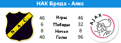 "Бреду", которая подпортила репутацию "Херенвену" и "Фейеноорду", сейчас намерен протестировать "Аякс", которому и самому бы не помешало разобраться со своим ляпом на "Амстердам Арене" в прошлое воскресенье. О былой мобильности и скорости игры "аяксидов" напоминала разве что форма и фамилии на спинах футболистов, считающихся чемпионами страны. Осечку Франк де Бур признал и обещал разобраться. Будем надеяться, что в компанию к Фишеру и Бойлисену в лазарет никто не отправится, Сигторссон не слишком рьяно отпразднует в пятницу свое 24-летие, а полузащита отойдет от недавней спячки. Ибо уже в следующих матчах столичную команду ожидает кубковая игра против АЗ и встреча в рамках чемпионата с "Твенте". Ну а потеря очков с "Камбюром" началась с того, что амстердамцы забили быстрый гол, а затем расслабились. Команда Франка Де Бура вторую игру кряду пропускает со второго этажа. НАК же после серии удачных матчей всё-таки оступился. Шестиматчевая беспроигрышная серия подошла к концу в матче с "Витессом". Интересно, что "Бреда" проведёт ещё два домашних матча подряд. После "Аякса" "крысы" примут "Утрехт". Добавим, что в последних четырёх матчах внутреннего первенства "Аякс" безоговорочно выигрывал у своего соперника (будь это домашний матч или гостевой), при этом не пропустив ни одного гола. Судите сами о шансах "Бреды"...