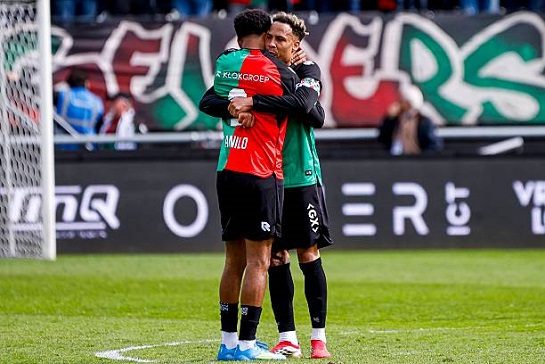 | Первый четвертьфинальный матч Лиги конференций против “Шахтёра” обернулся настоящим провалом для АЗ – 0:3. Не верится, что алкмаарцы опустят руки и не попробуют совершить камбэк, несмотря на близость финала Кубка Нидерландов против НЕК. Именно в Неймеген были обращены взоры любителей “оранжевого” футбола на минувших выходных. “Фейеноорд” был близок к важнейшей победе на поле главного преследователя, однако “красно-зелёно-чёрные” спаслись на флажке. Героем встречи стал Данило, который как нельзя кстати для НЕК открыл счёт своим голам в составе команды Дика Схрёйдера. В сезоне 2022/23 Данило был частью чемпионского “Фейеноорда” Арне Слота! Больше всего ничьей были рады в лагере “Твенте”, который после победы над “Волендамом” подобрался вплотную к “Фейе” и НЕК. ПСВ спустя неделю после защиты титула сломил сопротивление “Спарты”, в то время как “Аякс” не испытал проблем на поле “Хераклеса”. АЗ в преддверии ключевых игр сезона отвёл душу на “Херенвене”, тогда как “Утрехт” не пожалел своего, возможно, будущего главного тренера. “Гронинген” и “Гоу Эхед Иглс” подписали мировую, “Фортуна” упустила победу над НАК, а “Эксельсиор” дважды отыгрался на поле “Зволле”. Подробнее обо всех перипетиях 30-го тура Эредивизи читайте в традиционном обзоре на ФНК. ![]() Фото - Getty Images ”Правило бывших” сработало против “Фейеноорда” В центральном матче тура сошлись НЕК и “Фейеноорд”. Команда Робина ван Перси в начале игры добилась своего со стандарта. Хадж-Мусса от правого углового флага навесил по высокой дуге на линию вратарской хозяев, где Аясе Уэда перевисел Неяшмича. Гонсало Креттаз лишь проводил мяч взглядом! “Красно-зелёно-черные” ответили проходом Уаиссы, после прицельной подачи которого седовласый Линссен опередил Ватанабэ – Тимон Велленройтер сложился и забрал мяч в перчатки со второй попытки. Затем Сано получил ответный пас от Онала, влетел в штрафную “Фейе” с левого края и не смог обыграть Велленройтера… Правда, японец всё равно был в офсайде. В конце первого тайма на авансцену вышел один из главных технарей чемпионата Хадж-Мусса. Алжирец собрал на себе четверых соперников, переложил мяч под левую и хлёстко выпалил по позиции Креттаза. Впоследствии Хадж-Мусса укротил мяч носком и пробил точно в Креттаза, после спасения которого ван ден Элсхаут умудрился запулить мяч выше перекладины… В начале второй 45-минутки произошёл спорный эпизод, по итогам которого арбитр назначил опаснейший штрафной в сторону ворот НЕК и выписал предупреждение Сандлеру. Модер не сумел обвести стенку, а после залпа Хадж-Муссы с подбора мяч разминулся со штангой. Главным действующим лицом эндшпиля матча в Неймегене стал вышедший на замену Данило. Бразилец пробил выше цели после полуудара-полупрострела Онала, а уже на седьмой добавленной минуте Данило не пощадил бывший клуб, здорово положив корпус после прострела Онала и подправления Уаиссы. 1:1 – “Фейеноорд” два года не может обыграть НЕК. ПСВ снова победил, ”Твенте” и “Аякс” сократили отставание от зоны ЛЧ Год назад ПСВ оформил чемпионство на поле “Спарты”, а в этот раз команда Петера Боса уложилась за неделю до поездки на “Хет Кастел”. Фанаты эйндховенцев шумно и красочно отмечали третье подряд “золото”, превратив 11-тысячник в Роттердаме в домашнюю арену ПСВ. На первой же минут