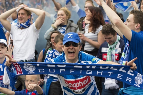 Затем на аванс-сцену вышли болельщики, если их так можно назвать, устроив