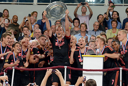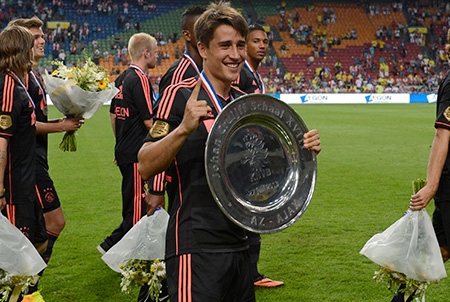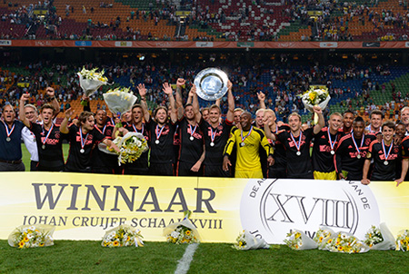 "Аякс" одержал долгожданную победу в Суперкубке и завоевал-таки трофей Йохана Кройфа. На протяжении трёх лет кряду столичную команду преследовали сплошные неудачи. В 2010-м трофей имени Йохана Кройфа "аяксиды" проиграли "Твенте" (0:1), спустя год опять же потерпели неудачу в противостоянии с клубом из Энсхеде (1:2), и, наконец, прошлым летом оказались биты ПСВ Дика Адвоката (2:4). Таким образом, предыдущий успех "Аякса" в Суперкубке был датирован 2007 годом, когда благодаря голу Габри ему удалось одолеть ПСВ (1:0). Волевая победа над АЗ позволила подопечным Де Бура обновить свои достижения в матче-открытия нового сезона. Ход матча никак не предвещал проблем столичной команде, об этом не было речи и до его начала. Амстердамцы начали с места в карьер, завладев инициативой с первых минут. Однако, как показал матч, мало владеть инициативой, а надо ещё и момент реализовывать, чего сделать в первые 45 минут матча не удалось. Во втором же тайме болельщики "Аякса", да и сами футболисты, испытали настоящий шок. На 51-й минуте АЗ воспользовался провалом в обороне соперника и Гудмундссон открыл счёт. Удалось алкмаарцам и удвоить преимущество, а сделал это Йоханссон. Впрочем, долго расстраиваться не пришлось. Спустя пару минуты Гауэлеу отправил мяч в собственные ворота, а за пятнадцать до конца Сигторссон оказался первым на добивании и установил на табло 2:2. Время плавно перешло в овертайм, где единственный и победный мяч на свой счёт записал капитан "Аякса" Де Йонг. Эриксен вложил мяч в голову Симу, который остался неприкрытым на дальней штанге и установил окончательный победный счёт в матче. Вот такой вот сумасшедший камбэк совершили подопечные Де Бура.