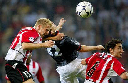 Переиграв на эйндховенском "Филипсе" местный ПСВ, "Монако" продлил свою беспроигрышную серию в матчах с голландскими клубами. Победу монегаскам обеспечили голы Фернандо Морьентеса и Эдуард Сиссе. ПСВ начал встречу по схеме 4-5-1, а единственного форварда Матею Кежмана из глубины поля поддерживали Джи-Сунь Парк, Арьен Роббен и Деннис Роммедаль. Подобная тактика могла принести дивиденды уже к 5-й минуте. Марк ван Боммель воспользовался оплошностью обороны гостей и переадресовал мяч на Роббена, который мощным ударом вынудил продемонстрировать свое мастерство Флавио Рому. Через минуту Роббен пробил чуть выше перекладины, ну а гости никак не могли найти свою игру. Впрочем, по истечении четверти часа и монегаски обозначили цель. Сиссе сделал передачу на поддержавшего атаку левого защитника Гаэля Живэ, однако удар последнего кипер хозяев Рональд Ватерреус парировал. Несколько мгновений спустя могли отличиться Морьентес и Людовик Жюли, однако ни тот, ни другой на передачу Жерома Ротэна не успели. Мяч упорно не шел ни в те ни в другие ворота, и Кежману оставалось лишь разводить руками. Однако в этот момент игру на себя взял Ротэн, навесивший со штрафного на дальнюю штангу, где открылся Морьентес. Испанец своим шансом воспользовался и головой в упор расстрелял ворота. После перерыва тренер голландцев Гуус Хиддинк попытался усилить давление на ворота соперника и вместо полузащитника Ремко ван дер Шаафа выпустил форварда Яна Веннегоора оф Хесселинка. Хозяева начали действовать увереннее и достаточно опасно верхом доставляли мяч появившемуся на поле нападающему. Однако гол забили гости. На 56-й минуте после четкой стеночки с Морьентесом Сиссе, купленный монегасками летом у "ПСЖ", оказался с глазу на глаз с Ватерреусом и технично переиграл голкипера, удвоив преимущество своей команды. Впрочем, после шока, вызванного вторым пропущенным мячом, ПСВ пришел в себя почти мгновенно. После фола на Парке в 19 метрах от ворот французов судья назначил штрафной, исполнить который вызвался Вильфрид Бума. Удар хавбеку удался и мяч закрутился в сетку, оставив не у дел Флавио Рому. Впрочем, этот гол на 65-й минуте стал последним в матче, и французская оборона за исключением эпизода, когда Веннегоор оф Хесселинк попал в штангу, сбоя не дала (отчет uefa.com).