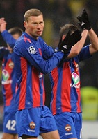 В середине тайма игра продолжилась в том же ключе. Королевский клуб имел заметное преимущество по проценту владения мячом, правда, подопечные Жозе Моуриньо редко доводили свои атаки до удара по воротам, натыкаясь на грамотно выстроенную оборону армейцев. Хозяева же сделали ставку на быстрые контратаки. На 24-й минуте мадридцы заработали еще один угловой. С подачей в исполнении Месута Озила справились защитники ЦСКА. В ответ Ахмед Мусса вновь на высокой скорости ушел от Коэнтрау, а вот подача у новичка «красно-синих» получилась неудачной. А через несколько мгновений гости открыли счет, воспользовавшись грубейшей ошибкой нашей обороны. Алексей Березуцкий подарил мяч на фланге Гонсало Игуаину, откуда аргентинец выполнил подачу в штрафную, где Тошич пытался сыграть на перехвате, однако снаряд все-таки попал к Криштиану Роналду, и португалец с близкого расстояния поразил ворота Чепчугова – 0:1. Один из своих первых моментов «сливочные» воплотили в гол. Класс есть класс. Российскому клубу, естественно, нужно было отыгрываться. Домашнее поражение практически лишало ЦСКА шансов на попадание в четвертьфинал. «Бланкос», в свою очередь, могли играть по счету. Минимальное преимущество в выездной встрече их вполне устраивало. Коллектив Леонида Слуцкого атаковал с большим желанием. Правда, опасных моментов у ворот Касильяса совсем не было. На 38-й минуте Криштиану Роналду организовал контрвыпад своей команды и заработал опасный штрафной. Португалец сам решил исполнить этот стандарт и пробил прямо в «стенку». В ответ Думбия откликнулся на навес с правого фланга и пробил головой. Мяч пролетел мимо цели. Под занавес тайма футболисты «Реала» получили право на угловой. Подача Месута Озила до нужного адресата не дошла, и защитники ЦСКА вынесли мяч подальше от своих ворот. Наши футболисты грамотно прессинговали своего соперника, провоцируя того совершать ошибки в довольно простых ситуациях. Уже в добавленное время Ахмед Мусса сделал прострел с правого фланга, на который вышел Икер Касильяс и забрал сферу себе в руки. Затем на удар метров с тридцати решился Евгений Алдонин, но снаряд в створ не попал.