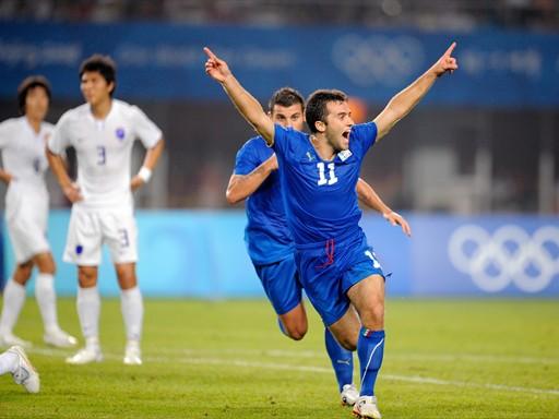Голы Томмазо Рокки, Джузеппе Рокки и Риккардо Монтоливо обеспечили сборной Италии уверенную победу над Южной Кореей со счетом 3:0 и путевку в четвертьфинал Олимпийского футбольного турнира. Игра началась без раскачки. На опасный удар со штрафного Себастьяна Джовинко корейцы ответили мощнейшим ударом Пака Чу Ена с 20 метров. Следующая опасная атака состоялась на 15-й минуте и завершилась забитым голом. Удар Рокки блокировали защитники, а на добивании удачно сыграл форвард испанского "Вильярреала" Росси, забивший уже второй гол на турнире. Вскоре прекрасный шанс не реализовал Сальваторе Бокетти, но второй забитый гол не заставил себя долго ждать. На 32-й минуте Джовинко сыграл на Марко Мотту, после передачи которого ворота корейской команды расстрелял Рокки. В концовке первого тайма корейцы едва не отыграли один мяч, когда после удара Шин Ен Рока мяч попал в перекладину. В то же время чистый выход один на один не реализовал Росси. После перерыва сборная Италии продолжала доминировать на поле. Несколько неплохих шансов не реализовали Росси и Рокки, а удару Джовинко из убойного положения не хватило точности. Тем не менее Южная Корея не избежала крупного поражения. На последней минуте вышедший на замену Роберт Аквафреска с правого фланга сделал передачу на Монтоливо и полузащитник "Фиорентины" с двух попыток направил мяч в сетку ворот.