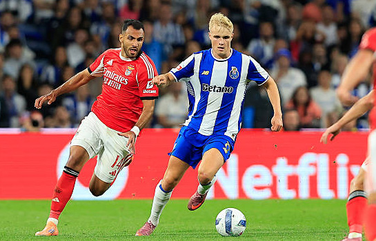 В 8-м туре чемпионата Португалии были сыграны два центральных матча. "Порту" и "Бенфика" не смогли выявить сильнейшего, разойдясь миром со счётом 0:0. А "Спортинг" и "Брага" тоже сыграли вничью, но с результатом 1:1. Соответственно на первом месте в турнирной таблиц идёт "Порту", у которого 22 очка. Далее с 19-ю баллами располагается лиссабонский "Спортинг", а замыкает тройку лидеров "Бенфика". У команды Жозе Моуринью 18 очков. "Жил Висенте" со счётом 2:0 переиграл "Эштрелу", набрал 16 баллов и вошёл в число группы лидеров. Следом в турнирной таблице идёт "Морейренсе", у которого после поражения от "Насьонала" осталось 15 очков. ФНК подводит итоги игрового уик-энда в португальской примейре. ![]() Фото - Getty Images "Порту" и "Бенфика" обошлись без забитых мячей В центральном матче 8-го тура чемпионата Португалии на стадионе "Драгау" встречались "Порту" и "Бенфика". После 7-ми туров "драконы" являлись единоличными лидерами турнирной таблицы с 21 баллов, а у лиссабонских "орлов "было 17 очков и третья позиция. В отчётном поединке оба тренера сыграли по схеме 4-2-3-1. Стартовый отрезок поединка прошёл в равной борьбе без единого опасного момента. Оппоненты вели большое тактическое противостояние, так что оборонительные редуты превосходили своих атакующих оппонентов. На 12-й минуте в жёстком стыке сошлись Вангелис Павлидис и Алан Варела, та что обоим потребовалась помощь медицинской бригады. После паузы футболисты пришли в себя и возобновили поединок. Аккурат в середине первого тайма футболисты "Порту" провели массированную атаку, которая завершилась падением в штрафной площади "Бенфики". Подопечные Франческо Фариоли требовали назначить пенальти, однако судейская бригада во главе с Мигелом Ногейрой посчитала, что никакого нарушения правил не было. На 33-й минуте Георгий Судаков, который постепенно становится новым лидером "Бенфики", нанёс классный дальний удар по воротам, однако великолепный Диогу Кошта среагировал и выручил свою команду. В ответ - Габриэль Вейга за счёт дриблинга прошёл нескольких оппонентов и был близок к голу, но мяч после его опаснейшего удара пролетел рядом со штангой. На 42-й минуте футболисты "Порту" организовали отличную комбинацию, так что на ударной позиции оказался Алан Варела, но его выстрел из пределов штрафной площади в последний момент был заблокирован. Первым на подборе оказался Габриэль Вейга, однако и после его опаснейшего выстрела мяч попал в футболиста "Бенфики". В самой концовке первого тайма футболисты "драконов" всерьёз претендовали на пенальти, однако арбитры решили, что фола всё-таки не было. Во втором тайме было мене интересно. На 61-й минуте Вангелис Павлидис имел возможность открыть счёт, однако в последний момент футболист "Порту" успел броситься под мяч. Далее пошли паузы, травмы, замены… В общем, темп игры сильно снизился. На 90-й минуте на замну у "Порту" вышел Родригу Мора. Именно он уде в компенсированное время мог принести победу "драконам", но мяч после удара 18-летнего португальца попал в перекладину. Финальный свисток зафиксировал нулевую ничью. У "Порту" 22 очка и единоличное лидерство, а у "Бенфики" 18 баллов и третья строчка в турнирной таблице. "Спортинг" упустил победу в матче с "Брагой" Лиссабонский "Спортинг" на своём поле принимал "Брагу". Команда Руя Боржеша активно начала встречу и в самом начале провела размашистую ата