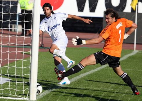 Перенесенный матч 9-го тура российского чемпионата с участием "Зенита" и "Локомотива" завершился вничью 1:1. Этот результат вряд ли удовлетворил наставников обеих команд. Подопечные Дика Адвоката в очередной раз потеряли очки на своем поле и не сумели выбраться из нижней части турнирной таблицы. Кроме того, отставание по потерянным очкам от лидирующего "Рубина" вновь увеличилось до четырех очков. "Локомотив", в свою очередь, продлил свою безвыигрышную серию до пяти матчей. В последний раз "железнодорожники" побеждали 10 мая (победа над "Томью" со счетом 2:0). Затем последовали поражения от "Амкара" и "Динамо", а также обиднейшие ничьи с "Химками" и "Спартаком" со счетом 2:2, хотя по ходу обоих матчей команда Рашида Рахимова выигрывала с разницей в два гола. Также "Локомотив" вновь доказал, что является очень неудобным соперником для "Зенита" в российском чемпионате. Из 24 предыдущих матчей питерцы смогли выиграть только 4, а в среднем за игру забивали "железнодорожникам" лишь 1 гол. Кроме того, "Локомотив" - один из трех клубов, которые не проиграли "Зениту" в его чемпионском сезоне: "Спартак" дважды обыграл питерцев, "Локомотив" выиграл дома и добился ничьей на выезде, а "Амкар" обе встречи завершил вничью. Сама игра между "Зенитом" и "Локомотивом" прошла в равной борьбе. В первой половине первого тайма преимуществом владели гости. Затем инициативу перехватил "Зенит", но серьезных моментов создать не сумел. Второй тайм начался с атак "Зенита" и на 52-й минуте после великолепной передачи Андрея Аршавина счет открыл счет Алехандро Домингес. "Локомотив" отыгрался спустя девять минут, когда после длинной передачи Родольфо отличился Дмитрий Торбинский. В оставшееся время "железнодорожники" вполне могли одержать победу, но прекрасным голевым шансом не воспользовался Питер Одемвингие.