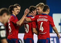 Ближе к экватору первого тайма мяч побывал в сетке ворот столичного клуба, но гол Смолова судейская бригада аннулировала из-за офсайда. Чуть позже игроки «Краснодара» заработали весьма перспективный штрафной. К мячу подошел Перейра и нанес очень неплохой удар, после которого мяч пролетел в опасной близости от створа. Вскоре за счет активных действий Маркова и все того же Перейры на правой бровке «быки» с интервалом в минуту заработали два угловых, однако извлечь выгоду из данных стандартных положений у них не получилось. На данном игровом отрезке матча инициатива перешла к гостям, и теперь уже «армейцы» были вынуждены обороняться практически в полном составе. Об ответных контратаках подопечные Леонида Слуцкого не помышляли. По истечении получаса южане вновь организовали остроту около владений неприятеля. Получив передачу от Лаборде, Мамаев нанес завершающий удар метров с десяти, который самоотверженно заблокировал Фернандес. Очень прилично смотрелись краснодарцы. Исходя из логики игры, именно они были ближе к тому, чтобы открыть счет, но на 35-й минуте вперед неожиданно вышли «красно-синие»! Получив передачу от Фернандеса, Головин, не мудрствуя лукаво, хлестким ударом метров примерно с линии штрафной площади поразил дальнюю «девятку» ворот Крицюка – 1:0. Неожиданное развитие событий, прямо скажем. Находясь на эмоциональном подъеме, подопечные Леонида Слуцкого тут же получили право на потенциально опасный штрафной. К мячу пробил Игнашевич и пробил над перекладиной. А на 40-й минуте ЦСКА вовсе удвоил свое преимущество в счете, поставив краснодарцев в крайне тяжелое положение. Перейра завозился с игровым снарядом в центре поля, чем воспользовался Муса, который быстро переадресовал мяч Оланаре, но Аарон крайне бесхитростно пробил прямо в защитника «быков». К счастью для хозяев, Головин оказался первым на подборе и аккуратным ударом поразил дальний угол ворот Крицюка – 2:0. Дубль оформил Александр! В оставшееся до перерыва время гости, естественно, пытались создать что-нибудь толковое впереди. Уходить на пятнадцатиминутную паузу с отставанием в два гола им не хотелось, однако ничего у подопечных Олега Кононова не получилось.