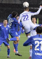 По факту оба тренера выставили смешанные составы. У хозяев остались в запасе, к примеру, Малых, Фамейе, Капленко, Аюпов и Кеняйкин, а у гостей в старте вышли Заболотный, Новосельцев, Бахтияров, Пруцев и новичок Дуганджич. Погода в Оренбурге была не самая футбольная – не то снег, не то град. Зрителей по этой причине оказалось немного, хотя вели они себя довольно активно. Начали команды осторожно, нащупывая игровые связи, но довольно скоро начал вырисовываться перевес гостей. На исходе стартовой десятиминутки они создали первый момент. Руденко получил мяч у угла штрафной, но переиграть Гошева не смог, а добивавший Пруцев зарядил выше створа. Пару минут спустя Дуганджич уже обязан был счет открывать. Заика это нашел форварда хорошей передачей с фланга. Новичок «барсов» здорово пробросил мяч мимо Гошева и последнего защитника, но промазал по фактически уже пустому створу. В следующей атаке гости заработали стандарт, с подбора после подачи которого неточно приложился издали Бахтияров. Атаковал «Сочи», а забил в первой же хорошей атаке «Оренбург». Стремительный контрвыпад два в два, своевременный пас Воробьева на ход Юсупову и точный удар Артема, не оставившего шансов Заболотному. Забив, «Оренбург» даже прибавил в интенсивности прессинга, так у гостей выходить через пас получалось через раз, а все чаще они просто били вперед в борьбу. И по такой игре на исходе получаса игрового времени «Сочи» повезло заработать пенальти. Прихватил Гойкович рукой Заику, не пустив его к мячу после подачи с фланга. Пробить доверили Дуганджичу, который уверенно развел по углам мяч и Гошева. За десять минут до перерыва Воробьев сбил на фланге Заику, что позволило гостям заработать еще один перспективный стандарт. Отбились хозяева после подачи Бахтиярова, а удар Цаллагова с подбора накрыли. Вскоре в контратаке гости создали хороший момент. Заика катил вразрез в штрафную на рывок оказавшемуся справа Набиуллину, который простреливал вдоль ворот. После пары рикошетов вынес все-таки защитник. Седом арбитр выписал первое предупреждение, наказав Новосельцева, а через минуту уже Гойкович получил «горчичник» за отмашку от Дуганджича в верховой борьбе. На последней минуте Маргасов сбил на бровке Скворцова. Болотов подал на дальнюю штангу, где вынес мяч Миладинович. Без проблем отбился «Сочи» и после корнера, а неточный удар с подбора стал последним в первом тайме.