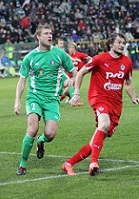 Микуцкису нанести прицельный удар головой – 0:1. Хозяева долгое время не