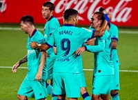 Именно «Барселона» стала той командой, которая прервала 6-матчевую беспроигрышную серию «Вильярреала» после возобновления Примеры. «Подводники» вышли на домашнюю встречу в боевом составе и с самым серьезным настроем, но уже в дебюте игры были вынуждены начинать с центра после автогола Пау Торреса. Хозяева смогли поймать каталонцев на контратаке и сравнять счет, но на 20-й минуте Луис Суарес после паса Месси с линии штрафной ударом в «девятку» вновь вывел свою команду вперед. «Барса» играла легко, много атаковала и была похожа на себя в лучшие годы. «Желтая подводная лодка» ничем серьезным ответить не могла, жалась к своим воротам и от разгрома в первом тайме спас лишь голкипер Серхио Асенхо. Третий гол в ту же правую «девятку» забил Антуан Гризманн после паса пяткой от Месси, после чего все стало ясно еще до перерыва. Во втором тайме Кальеха снял с игры своих лидеров, показав, что не будет бороться даже за ничью и постарается сохранить силы ведущих игроков на следующий поединок. «Барселона» играла чуть менее куражно, но все-таки дважды забила. И если гол Месси был отменен из-за минимального офсайда у Артуро Видаля, то взятие ворот в исполнении Фати было в рамках правил. В компенсированное время сине-гранатовые могли делать счет и 5:1, и 6:1, но вратарь «подводников», совершивший с десяток сейвов за игру, этого не позволил, выручив в, казалось, безнадежных ситуациях после ударов Месси и Брейтвейта.