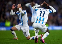 В Сан-Себастьяне в ответном полуфинальном матче Кубка Испании "Реал Сосьедад" сыграет против "Мальорки". Кто станет первым финалистом Кубка Короля - участник плей-офф Лиги чемпионов или аутсайдер, ведущий борьбу за выживание в Ла Лиге? Отчётный поединок станет уже 4-й очной встречей басков и балеарцев в текущем сезоне и 3-м междусобойчиком за последние 3 недели. В первой игре 1/2 финала Кубка Испании "бело-голубые" ожидаемо действовали с позиции силы, но так и не смогли распечатать ворота Доминика Грейфа - 0:0. Антигероем матча на стадионе "Сон Муа" стал Умар Садик, который четырежды был близок к голу, дважды не попав по пустым воротам "красно-чёрных"... В позапрошлом туре Примеры "Реал Сосьедад" и "Мальорка" вновь встретились на Балеарских островах: в рамках первенства "королевские" дожали оставшихся вдесятером "островитян" в компенсированное время благодаря точному кивку головой Микеля Мерино - 2:1. Волевому успеху басков во многом способствовала несдержанность капитана "Мальорки" Антонио Раильо, схлопотавшего два горчичника перед свистком на перерыв. Также нельзя пройти мимо удручающей статистики выступления "киноварных" в Сан-Себастьяне - 12 последних личных встреч в Стране Басков завершились победами "Сосьедада", причём 9 последних - "сухими" победами, а каждая вторая игра на "Реале Арене" на этом отрезке закончилась со счётом 1:0.