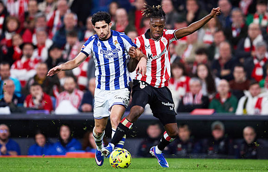Не смогли выявить сильнейшего «Атлетик» и «Реал Сосьедад», но игра получилась достаточно яркой и непредсказуемой. В первом тайме получше смотрелись гости. В дебюте едва не забил Оярсабаль, затем выручил Симон после удара головой Мартина, ну а за несколько минут до перерыва Гедеш со второй попытки счет открыл. Сперва после стандарта не смог Гонсало переиграть из убойной позиции Симона, однако исправился почти сразу, шикарным ударом после розыгрыша углового все-таки счет открыв. После перерыва гости могли оформить второй, но Оярсабаль не реализовал выход один на один. «Атлетик» последовательно наращивал давление. Оба тренера активно работали заменами. Сыграли ходы Вальверде, а Матараццо ошибся. Вышедший со скамейки Мендес заработал удаление, хотя по нему точно есть вопросы – слегка зацепил лицо оппонента после провокации Браим. А вышедший у хозяев еще в перерыве де Галаррета спас ничью, завершив мощным ударом сольный проход за несколько минут до конца. Вполне могли и те, и другие вырвать победу, но отличный момент упустил Оскарссон, а после удара Паредеса спас Ремиро. Ничья исходя из того, как все складывалось, скорее в пользу «Атлетика», но глобально это неудачный результат для обеих команд, которым нужна была победа. ![]() Фото - Getty Images Предыстория Дела «Атлетика» плачевны. Мимо плей-офф Лиги чемпионов пролетели баски, а в чемпионате не знаю побед с начала декабря. За это время добыто одно очко в пяти турах – теперь команда Вальверде ближе к зоне вылета, чем к еврокубкам. У «Реала Сосьедад» после смены тренера напротив дела пошли на лад. Ничья с «Атлетико» и три победы, в том числе над «Барселоной» и «Сельтой», которая идет в семерке. До «кельтов», тем не менее, клубу из Сан-Себастьяна еще шесть очков. И вряд ли просто будет взять очередные три в Бильбао, где «львы» злы и загнаны в угол. Дерби – отличная возможность начать всплытие. Отметим, что обе команды продолжают борьбу за Кубок Короля, на который с учетом положения в чемпионате и те, и другие точно будут делать ставку. К сожалению, по-прежнему какие-то проблемы со здоровьем у Арсена Захаряна, который и сегодня в заявку гостей не попал. Ход матча Хотя фаворитом дома выглядел «Атлетик», дебют остался за гостями. Уже на пятой минуте сан-себастьянцы создали первый голевой момент. Марин получил мяч в штрафной и плотно пробил по позиции Симона, но подбор остался за Оярсабалем. Протыкал в угол мяч лидер «Реала Сосьедад», однако Аресо успел заблокировать на линии. Хозяева ответили угловым, после подачи которого остроты они не создали. Постепенно инициативу перехватил «Атлетик». Нико Уильямс пробил из-за штрафной. Попал в защитника, и мяч ушел на корнер. Верх сняли гости, а Арамбуру получил повреждение – пауза. Дальше еще один угловой для хозяев – и снова подача Беренгера после розыгрыша опасной не получилась. «Реал Сосьедад» сбивал темп за счет контроля мяча. В редкой позиционной атаке Гедеш подставился под фол Паредеса, заработав опасный стандарт. Долго готовились гости, но в итоге Гомес подал так себе. Лишь угловой выжали сан-себастьянцы. А корнер получился острым. Высоко вырезал Солер на Марина пас, а тот аккуратно кивнул в верхний ближний угол. В эффектном броске Симон поймал намертво. Минутой позже Гедеш выскочил слева практически один на один после вертикального паса вразрез, но С