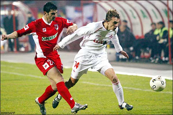 ожидая своего шанса. В итоге на 29-й минуте пребывавшие в летаргическом сне защитники "Спартака" оставили в штрафной в полном одиночестве Данчулеску, который пушечным ударом открыл счет. Спустя четыре минуты хозяева поля трижды в упор расстреливали ворота Ковалевски, но каждый раз попадали в защитников. Концовка тайма прошла с полным преимуществом "Динамо". На 43-й минуте после стремительной атаки Тамеш с убойной позиции пробил в штангу. На второй тайм "Спартак" вышел без Егора Титова, который до конца так и не оправился от травмы. Лишившись своего капитана, "Спартак" попросту развалился. Сначала румыны забили гол из положения "вне игры". А затем после розыгрыша углового при полном попустительстве Станича второй гол забивает Иордаче. Через несколько минут лишь великолепная реакция Ковалевски спасла "Спартак" от гола Григоре, который в упор бил с трех метров. Оборона "Спартака" продолжала трещать по швам и все завершилось назначением пенальти за фол Кебе, сыгравшего кстати худший матч за красно-белых. Данчулеску уверенно переиграл с