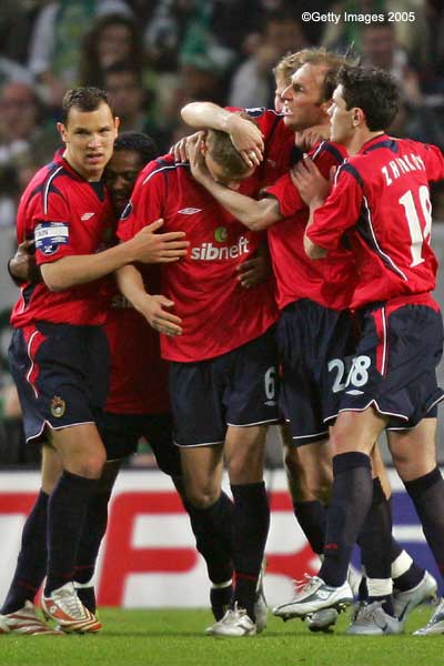 Алексей Березуцкий празднует забитый гол.