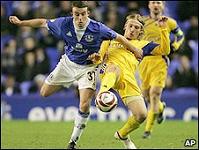"Эвертон" ответил опасным выстрелом со штрафного Хосе Бакстера метров с