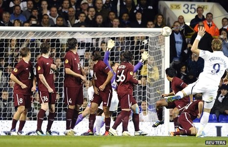 "Тоттенхэм" очень опасно. После подачи Леннона Дефо бил впритирку со