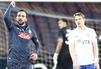 Начался матч для "Динамо" прекрасно. В первой же атаке Жирков исполнил дальний удар в уголок, а Андухару пришлось спасать неаполитанцев. Угловой же после этого стал результативным. Подачу Вальбуэна в ворота переправил головой Кураньи. 0:1. Гол на выезде на второй минуте – то, что нужно. Однако неаполитанцы не из тех, кто будет сдаваться в таком турнире перед родными трибунами в подобной ситуации. Сразу хозяева рванули в наступление и создали момент. Хорошую подачу Игуаина замыкал Мертенс, но Самба в последний миг удар блокировал. Динамовцы как-то слишком зажимались. Но "Наполи" понес еще одну потерю: Кулибали получил травму и уступил место на поле Альбиолю. Это не помешало хозяевам продолжить давление. После розыгрыша углового и прострела Габулов отбил мяч перед собой, а вкатить его в сетку помешал в последний момент защитник. "Динамо" все же вылезало в контратаки, но нечасто и неостро. А "Наполи" действовал куда интереснее, подгружая штрафную Габулова подачами и прострелами. Впрочем, поставить в неудобное положение хозяев мог Кураньи, который после очередной подачи пробил мимо из убойного положения. У неаполитанцев же наиболее активным был Мертенс, которому много свободы на фланге давалось. Он и сам обострял, и партнерам помогал. В середине тайма он поучаствовал в серии атак, однако гол случился без него. Гулям вырезал подачу на Игуаина, который переправил мяч в сетку. 1:1. Это было логично. После гола "Наполи" продолжал атаковать, а динамовцы выглядели немного растерянными. Но в прессинг бросались и в целом держали себя в руках. Мертенс не успокаивался и пролезал к штрафной слева. Ему удалось снова исполнить прострел, который после рикошета от Самба обезопасил Габулов. Натиск неаполитанцев развивался, и Вальбуэна не совладал со скоростью Мертенса, подсек его в штрафной после "стеночки", привезя пенальти. Его реализовал Игуаин, пробив мощно по центру. 2:1. Динамовцы опять несколько упустили нить, и Зобнин на ровном месте заработал желтую карточку, срубив Инлера. В атаке немного напомнил о "Динамо" Жирков, который вырезал подачу к воротам, но уверенно сыграл на выходе Андухар. Затем контратаку три в три не очень здорово развил Кураньи, потеряв мяч, не сумев сделать пас на Вальбуэна. Но поборолся Кокорин и заработал опасный штрафной. Вальбуэна со стандарта пробил выше цели. Эти всплески выглядели эпизодическими, а в общем мяч и территория принадлежали "Наполи", который планомерно проводил позиционные атаки. Очередной выпад на 38-й минуте дальним ударом венчал Инлер, но попал в Габулова. За контратаку отвечал Кокорин, который пытался перекинуть защитников и вратаря, но угодил в Бритоса и заработал угловой. На сей раз корнер голевым не стал. А быстрый ответ "Наполи" остановил фолом Джуджак. Концовку тайма в спокойных атаках провел "Наполи", который больше пробиться к воротам Габулова не сумел.