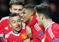 Чуть ли не центральным противостоянием четверга стал поединок на «Олд Траффорд», где «Манчестер Юнайтед» принимал недавнего обидчика – «Митьюлланд» из Хернинга. Повышенное внимание к этому матчу было обусловлено результатом первой встречи, оставшейся за датским чемпионом – выиграв 2:1, «волки» сделали весомую заявку пусть и не на выход в следующую стадию, но на серьёзную порчу нервов грозному, хоть и обескровленному травмами, сопернику. Первый тайм отчётной схватки только усилил опасения английских фанатов насчёт того, что «красные дьяволы» могут вылететь из еврокубка уже на стадии 1/16 финала: один из лидеров гостей Пьоне Систо открыл счёт. Теперь «МЮ» нужно было забивать хотя бы два только для того, чтобы перевести игру в овертайм. Благо для хозяев, отыграться удалось быстро: уже спустя 4 минуты после гола в рамку Ромеро защитник датчан Николай Бодуров срезал мяч в собственные ворота. А самое вкусное команды оставили на второй тайм. Начинался оный в резвом темпе, но следующего гола всё-таки пришлось подождать: подопечные Луи Ван Галя выстрадали его на 64-й минуте – отличился дебютант основного состава, 18-летний Маркус Решфорд. На достигнутом юнец не успокоился, и вскоре даже оформил дубль, сделав счёт вполне приемлемым для хозяев. Однако испытывать судьбу и удерживать добытое преимущество манкунианцы не рискнули: продолжили атаковать и в концовке встречи сделали гандикап более убедительным. Эррера реализовал заработанный Депаем пенальти, а затем сам голландец ударом из-за пределов штрафной поставил эффектную точку в матче. 5:1 – «МЮ», хоть и растратив массу сил и эмоций, выходит в Топ-16.