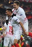Первый четвертьфинальный матч Лиги Европы между "Атлетиком" и "Севильей", как и ожидалось, получился очень напряжённым и упорным. Предсказать его исход изначально было проблематично, но вряд ли многие ожидали именного такого итогового результата. Непобедимый в родных стенах в текущем розыгрыше Лиге Европы "Атлетик" уступил вовсе не знающей до этого успеха на выезде "Севилье". При этом баски никак не заслуживали поражения и, в целом, были острее, но гости хладнокровнее отнеслись к своим шансам. Первый тайм голов не принёс, а второй начался для "Атлетика" очень удачно - уже на 48-й минуте очередным своим голом в этом розыгрыше Лиги Европы (девятым) отметился Ариц Адурис. Хозяева могли и упрочить своё преимущество, но вместо этого очень быстро пропустили - ошибка Икера Муньяина стоила его команде гола Тимоти Колодзейчака. После этого "Севилья" сосредоточилась почти целиком на разрушении, и у басков стали возникать серьёзные проблемы с преодолением их эшелонированной обороны. Эту задачу им выполнить так и не удалось, а вот гости под занавес встречи отметились разящей контратакой, которую завершил вышедший на замену Висенте Иборра. В итоге "Севилья" очень вовремя для себя одержала первую гостевую победу в сезоне, сделав весомую заявку на выход в полуфинал Лиги Европы. "Атлетику" же теперь для успеха необходимо забивать в ответном матче как минимум дважды.