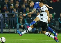 Несмотря на то, что на выходных "Боруссия" в матче бундеслиги уверенно обыграла "Шальке" со счетом 4:2 на своей домашней арене, в сегодняшнем матче, уже на чужой площадке, "жеребцам" пришлось очень непросто. Хороший, насыщенный событиями первый тайм матча пролетел на одном дыхании. Соперники обменялись парой уколов уже в самом начале поединка, и самым болезненным оказался выпад "Боруссии" - после жесткого отбора на чужой половине Ларс Штиндль быстрым пасом вывел к воротам Хофманна, которого упустил Колашинац, а тот спокойно реализовал выход один-на-один. Стоит отметить, что главный арбитр встречи голландец Бьорн Кейперс в значительной степени опеределял и направлял ход поединка - рефери позволял бороться в жесткой манере, но при малейшем пресечении определенного "порога" выписывал "горчичники". Так, ответный гол "Шальке" тоже был забит похожим образом - после жесткого единоборства в центре поля Раффаэл потерял мяч, в результате чего моментально развернулась контратака хозяев - Горецка отдал пас Бургшталлеру, который бильярдным ударом положил мяч в дальний нижний угол. Во втором тайме характер игры переменился - "Шальке" целиком и полностью прибрал себе инициативу, а "Боруссия", чем дальше, тем сильнее закрывалась. Удачно на замену у хозяев вышел Эрик Шупо-Мотинг - камерунец в связке с Колашинацом представляли огромную угрозу для правого фланга обороны гостей. При большем везении гельзенкирнцы могли бы и забить - но то штанга, то перекладина выручала "жеребцов", а когда мяч летел в створ - практически идеально играл Ян Соммер. "Боруссия" может считать добытую на выезде ничью своим очередным успехом в этом уже вышедшем за пределы бундеслиги противостоянии с "Шальке". Однако, подопечные Дитера Хеккинга должны помнить урок, который сами же недавно преподали "Фиорентине" - удачный гостевой матч сам по себе еще ничего не стоит, и для общей победы "жеребцы" должны в ответном поединке показать еще более убедительную игру.