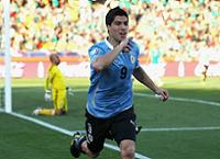а счет под конец тайма открыла сборная Уругвая, усилиями Суареса. Вторая