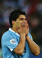 овер-тайма Суарес выбил мяч рукой с линии своих ворот и получил красную