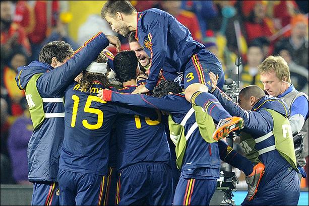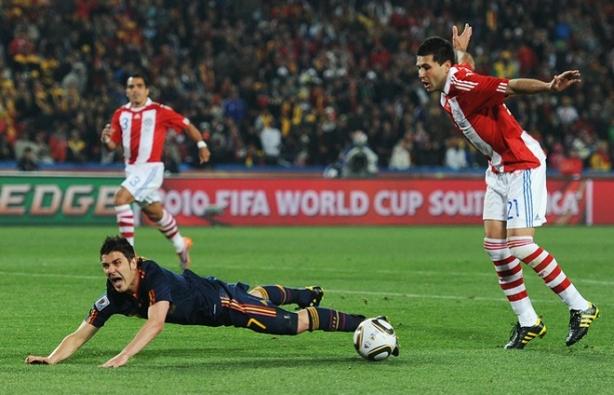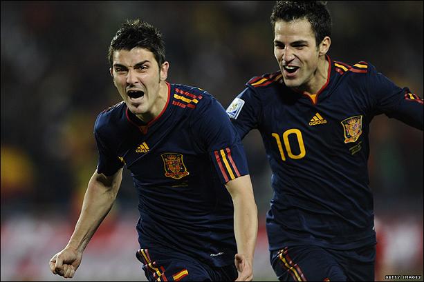 Вилья забивает победный гол. |