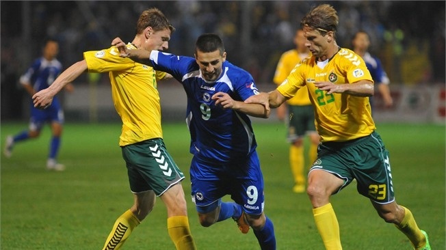 Литовцы чуть не заставили замолчать трибуны в Зенице, когда уже на старте игры вывалились втроем к штрафной Беговича. Однако, неточный пас Боровского был перехвачен Враньешем и опасная атака опасным ударом не завершилась. Минуты с 10-й хозяева завладели инициативой и стали осаждать ворота гостей. Подопечные Чобо Ласло пробовали играть в более-менее открытый футбол. Это им принесло дивиденды только в виде ударов по воротам, но Бегович справился с попытками Станкявичюса. На 28-й минуте Ибишевич получил классный пас от Пьянича и великолепным ударом отправил сферу в "девятку". Еще через 7 минут свой очередной гол забил Джеко, воспользовавшись отскоком в штрафной от ноги Пьянича. Сам же Миралем стал автором 3-го гола, когда получил пас от Джеко и расстрелял Карчемарскаса. Во втором тайме оба тренера сделали ряд замен, но сильно на игру они не повлияли. Одни не могли, а вторые не хотели. Гол престижа в концовке поединка мог забить Шярнас, но Бегович распечатать свои ворота не дал.