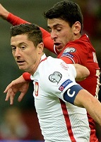 Затем был угловой. Теодорчик головой, на этот раз попал. Но «снаряд» угодил… в руку Андоняну. И где же пенальти? Не стал словенский рефери Кружляк назначать одиннадцатиметровый удар, а должен был. Побоялся, что ли? Или решил, что не стоит в данном случае так поступать? Короче, всё ещё нули на табло. И ведь постоянный напор на ворота Бегларяна оказывался. Например, стоит выделить момент, когда после подачи с углового (с правого фланга) Левандовски оторвался от Арояна и с семерки доброй метров под перекладину каааак разрядил, но Айрапетян подстраховал, головой вынес мяч уже, по сути, из пустых ворот. Что ж так не везло полякам? Не могли они ворота конкурента распечатать. А Андонян, конечно, отличился. Сбил за несколько минут дважды Теодорчика, получив по желтой карточке за каждый из фолов и… в итоге – красная. В большинстве хозяева поля! Казалось, уж сейчас они разойдутся, как следует. Енджейчик получил повреждение, вместо него на поле показался Вшолек. А Мурадяна (у армян) сменил Восканян. Чонек правила нарушил, хватая за плечо соперника – также желтая карточка провинившемуся. И пока Григорян издали бил, да еще и не в цель, хозяева поля продолжали солидно отвечать на все редкие выпады гостей. Левандовски после передачи выбежал, здорово разрядил по воротам соперника. Вот только не попал тоже по воротам. Сбился прицел сегодня у Роберта, что ли? Левандовски еще потом и на Крыховяка отдавал здорово, но последний из вышеназванных тоже отличиться не сумел. Беда прямо какая-то. Пиззелли же получил повреждение, медики помощь ему оказывали, но вроде несерьезная травма. На этом всё. Ну, в смысле тайм закончился. Во втором, думалось, подопечные Навалки всё же забьют. На успех гостей в этом плане рассчитывать приходилось гораздо меньше, по причинам вполне понятным.
