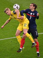 После победы со счетом 7:1 в товарищеском матче в октябре Франция могла ждать легкой прогулки во встрече с Украиной. Но на этот раз речь шла об официальном матче. И опасения скептиков оправдались. В первом тайме Франция в большей степени доминировала, создала много моментов и почти все время проводила в атаке. Но Украина тоже в основном компактно оборонялась и все блокировала, пусть порой и случались провалы. Во время одного из них Франция усилиями Гризманна забила. В первом тайме она могла развить успех, но не сделала этого. А после перерыва пошла совсем другая игра. Украина окончательно приспособилась к манере игры соперника и перекрывала все подходы. Французы много возились с мячом, кружили, но ничего не могли создать. Украинцы почти не атаковали, но сумели сбегать в удачную контратаку, в которой забил Сидорчук. После этого Франция вроде взялась за дело более основательно, но все равно не смогла толком вскрыть компактную защиту противника.